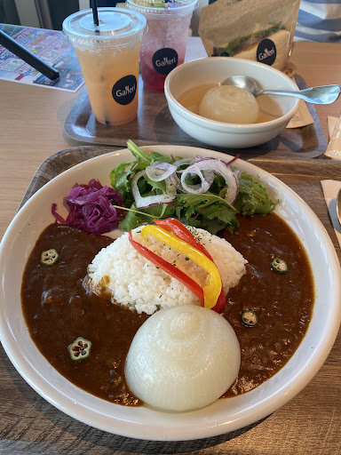 We had curry rice with a whole Awaji onion, onion soup (also with a whole bulb), and an Awaji beef sandwich. All were decent. The orange juice had a slight bitter note.