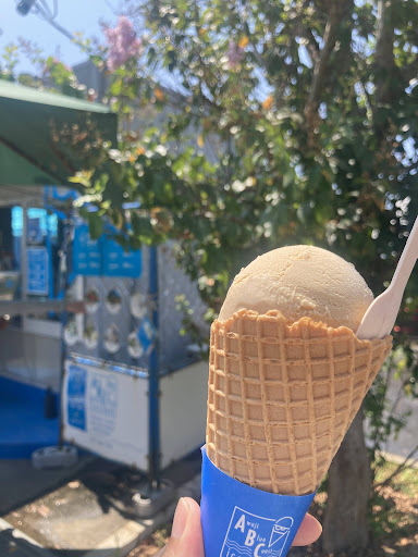駐車場無料です。 回転寿司、ラーメン屋、パン屋、ハンバーガー屋さんなどが集まったロードサイド店舗です。フレーバーごとに値段が違うので、ちょっと戸惑いました。シングルでいくら、ダブルでいくらって値段が決まってる方が購入しやすいかな。苺ミルク、シングル430円。コーヒー、シングル430円。 普通に美味しかったです。 海沿いの店ですが、店舗横の椅子からは海が見えないので、回転寿司の裏手の堤防まで行かないとダメなので、ちょっと残念でした。 食べた後のカップを回転寿司の横の大きなゴミ箱に捨てようとしたら、アイスのカップのゴミ捨て禁止の貼り紙が、アイスクリーム屋さんのゴミ箱にちゃんと捨てました。 タイミングよくそんなに並ばずに買えましたが帰る頃には長蛇の列が。 カード、ID使えます。 スプーンを自分で取る方式なんで、衛生面を考えて、スプーンをつけて提供し...