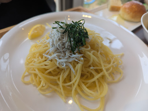 パスタを頼みましたが、味薄い、、、 私はレモンクリームパスタ、連れはしらすのオイルパスタを注文しました。 どちらも味薄いと言いながら食べてましたが、 連れのパスタは茹でたスパゲッティにしらす乗ってるだけとのことで(笑) 確かに麺にオイル感が皆無で、間違えてると思うと言いながら食べてました。 さすがに店員さんに聞いたほうがよかったかもしれません。 コーヒーもいまひとつだったそう。