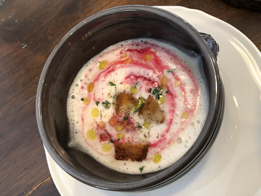 カウンターに座ったのですが、あまり話しかけてもらえなかったです。目も合わなかったです。カウンターの醍醐味なのに。 料理の盛り付けは綺麗だったと思います。サービスも丁寧でした。でも味は普通で量は少な目です。 ○付き出し、普通です。 ○スープドポワソン、トマトの味が強過ぎたし、塩味が薄かった様に感じました。味見しました?って感じです。 ○前菜、鳥のバロティーヌは普通です。 メイン料理(写真も撮ってないです。)は、鯛・イノブタ・牛赤ワイン煮込み・牛フィレからのチョイスで、鯛以外はプラス料金がとられます。 私はイノブタのパン粉焼きにしましたが、部位が端っこだったので固過ぎて噛みきれなかったです。野菜も少なかったので何が添えてあったのか記憶にないです。豚肉で追加料金取るの?って感じです。
