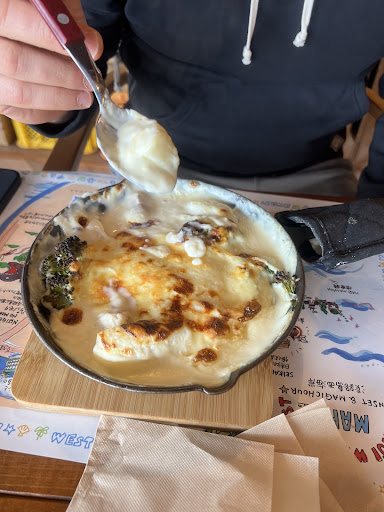 Read more休日に予約無しで11:30に伺いました。入口で案内をしていただけるのですが、3割程度のお客さんにも関わらず1時間半くらい待って欲しいと。また、テラス席はペット連れのお客さん優先とのことでした。 予約してないのでそういうものかと思い、順番がきたら鳴るブザーを渡され待ちました。 1時間くらい待ったところで席も空いていたので、まだですか?と聞いたところ後10分くらい言われ待ちましたが呼ばれず、結局1時間40分ほど待ってもブザーが鳴らないため店員さんに壊れてるか確認したら2.3分で案内してくれました。あのまま待っていたらもっと待っていたかも? その時ちょうど来られた予約してないであろう外国人の方が先に通されたのは謎ですが。 そしてテラス席を見るとほぼペットを連れていない方が座られてました。あれ、、、??優先とは??