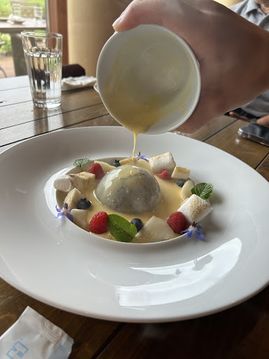 以下、前回投稿分↓ 雰囲気と接客はとても良かったです、が デザートのチョコドームのやつだけは許さん。 出てきた時は皿が大きくて、おぉ!と思ったけど、 あったかいバニラのやつかけて切り開いたら、中身スカスカで、味があんまりないスポンジケーキが数個入ってるだけでした。 チョコもペラッペラで不味いし、盛り合わせている果物も香りのない桃、ちっせぇバナナが数個、邪魔なミント(ミントは飾るならせめて一個にして、基本飾りやから主食レベルで三つはキツい)、気持ち程度のベリー類(ブルーベリーは近所のブルーベリー畑のやつかな?これだけはめっちゃ美味かったです) 綺麗に食べるのは無理、溶けたチョコ擬きと、かけたバニラでゲ◯みたいな見たい目に.... 申し訳ないけどこれに1200円はふざけてるとしか思えなかったです。 500円でも高い。いくら株主クーポン使えるからと言ってももう行くことは無いかな。 ご飯も残してる人結構多かったから多分美味しく無いんだと思う... 桃のシュークリームも桃自体の香りほぼなくて淡路の他のケーキ屋のシュークリームの方が美味しかったです。 SNS映えの時代はもう終わってるから味にフォーカスしてくださいマジで。 あ、コーヒーは美味かったです、量が少ない...