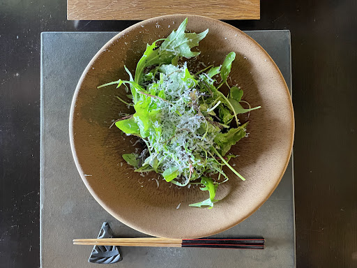 初めて行ったのは2021年9月18日のランチです。 海側から少し山手に上がった古民家レストラン。 使用する食材や調理に器と拘りのあるお店です。 この日のメニューは、旬の淡路島のイチヂクと淡路島産雪姫ポークの自家製生ハム(シンプルにイチヂクにはオリーブオイルが掛かってます。生ハムで巻いて頂くと、生ハムの塩気とイチヂクの優しい甘みが、相性バッチリです)。 仮屋漁港の鱧のフリットと自家製チーズかけ(熱々の揚げたてで、フワッとサックリしてて、チーズのほのかな塩味が良い塩梅です)。 幻種農園さんの無農薬のむかごを使用し、自家製のナマハムやチーズを使ったスープ、器も拘って作ってもらったらしい(生ハムの濃厚な出汁が感じられる、ポタージュほどトロミのないサッパリめのスープです)。 自家栽培の小麦を使用した、玉ねぎとローズマリーのフォカッチャとふすまと自家製天然酵母を使用したパン(フォカッチャは塩気と玉ねぎが香ばしいです。天然酵母パンも耳が香ばしいです)。 仮屋漁港のウオズと幻種農場さんの翡翠茄子の自家製麺のパスタ(焼き茄子にしてあるみたいで、茄子の香ばしさが良いです、魚の臭みも無く、太めの自家製麺によく絡んで美味しい)。 椚(くぬぎ)座和牛のイチボのステーキ(めちゃくちゃ柔らかくて美味しいです。 添えてあるふすまを使用した胡瓜の浅漬けも、ご飯が欲しくなる美味しさでした)。 淡路産栗の渋皮煮入り、自家製全粒粉のパウンドケーキ。自家製小麦の麦茶。 見た目もシンプルな料理ばかりですが、丁寧に調理されてる事が伝わる美味しい料理でした。 次は2021年11月に伺いましたが、...