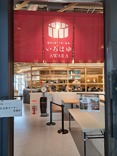 いろはゆは芦原温泉駅に新設されたお土産とお食事処です。お昼時は混むので席を確保してから注文です。ところがこちらの注文方法はタッチパネルだけになっています。このタッチパネルが2機あるのにずっと一機のみ稼働でちょっと並ぶと全く機能せず…って感じです。タッチパネルで注文してレジ済ませてから呼び出しのベルもらって着席です。ベルが鳴れば注文したものを撮りに行くといった具合です。フードコート形式でしょうか?まあ作り手も狭いところで対応しているので少し混めば30分待ちとかなります。せっかく新しい駅ができて新しいお食事処で美味しいものをいただきたいのに30分待ちで諦めた人もいました。私たちは時間があったのでゆっくり注文できてよかったですが…。