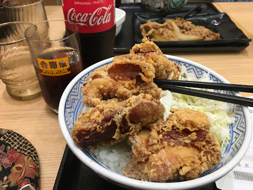 Had the karaage chicken and rice. It was really good. There’s a “mayo” or dressing pack that came with the meal. I put it on the shredded lettuce that was on top of the rice. Service was great even with the language barrier. Some menu items are different than what is available in the states, like the karaage for example. Their beef is the same. My wife had it and said it was the same as the states. If you’ve been to this restaurant chain in the US (mainly in Southern California for me) I’d say give this a try. I honestly think it is...
