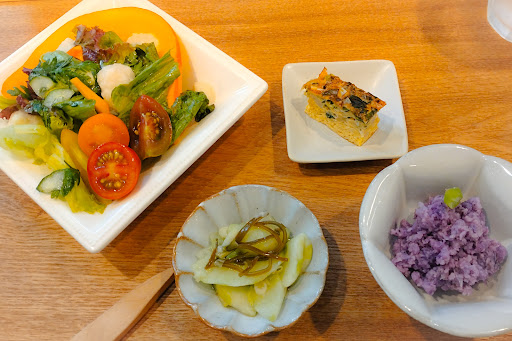 何度か利用させていただきました。 季節の食材を使ってこだわりのランチやスイーツを提供されていて、見た目も味も美味しいと思います。しかしこちらのスタッフの方の接客態度に問題有り。数回訪れたうちの残念な出来事のひとつです。食べたかったスイーツの取り置きを事前に電話でお願いしてお伺いしたところ、満席なので席が空き次第案内するのでそれまで車の中で待機するよう指示されました。車も確認されていたので安心して呼ばれるまで楽しみに待っていました。ところが待つこと1時間。後から来たお客様を次々と案内されていたのでまさか??と思い、スタッフの方に順番まだですか?とお尋ねすると、あ!忘れてました!今空いてるのでどうぞ〜と何のお詫びの言葉もなく普通に言われました。いい加減な対応にさすがに腹が立ったので、今日はもういいですと言って帰りました。その後店主さんらしき方から謝罪の電話があり、後日お伺いしてお目当てのスイーツを美味しくいただく事が出来ました。 それから約1年後、、食べたいスイーツがあり駐車場も空いていたので久しぶりにお伺いしてみました。席はやはり満席。念の為利用可能か確認しようとスタッフの方にお尋ねしたところ、、、「今座れないので待ってもらえます?!...
