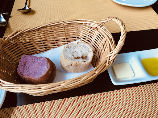 Read moreGW中のランチで伺いました。当日の10時頃予約の電話をして入れるようなので12時にしました。中に入ると黒っぽい内装で大きな窓からの明るさだけで店内の明かりをとってました。接客の女の方が案内から提供まで1人でテキパキやっていました。私達の他にも3組ほどいらしていて私達は予約席に案内されました。それからも3組くらいいらしてました。ランチコース2200円でメインを魚と肉にして、食後はホットコーヒーを選びました。前菜のエビほたてマリネの牛蒡のソースはすごく綺麗で食べるのが惜しかったです。それから暖かいパン2種類、パンに付けるオリーブオイルやバターも先に出されました。その後に出てきたウドと新玉ねぎのスープは濃厚でクリーミーで温かく一気に飲み干してしまいました。笑 メインの魚はスズキのソテー刻みワサビソースでした。肉厚で、白身はほろほろしていて骨もなく刻みワサビソースともあってました。最後はよもぎのブランシェと苺のグラタンでした。よもぎの香りがよく柔らかいお餅のようでした。プリンとカスタードのようなクリームの中に生の苺がダイズカットしてあり柔らかい甘さの中に甘酸っぱい苺がアクセントになっていてデザートグラタンでした。食後のホットコーヒーも美味しかったです。フランス料理のランチもたまには良いですね!!ご馳走様でした。支払いは...