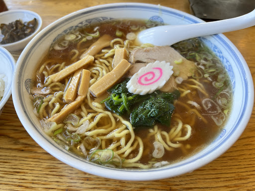 着丼した瞬間、懐かしい香りに包まれて一気にノックアウト。黄金色に澄んだスープは、動物系の出汁と醤油のコクが絶妙なバランスで、飲み干したくなるやさしい味わい。 トッピングはチャーシュー、なると、メンマ、青菜とシンプルながら無駄のない構成。中太縮れ麺がスープとよく絡み、ツルツルとすすれる食感も◎。 何度でも食べたくなる、安心感と郷愁を感じる一杯でした。