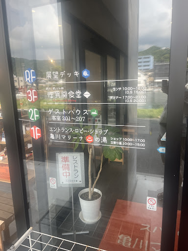 Read moreクチコミに書いてあったとおり宿への行道がちょっ とわかり難かったですがサイズスイミングスクール をナビに入れ直したら辿り着きました。 宿に到着したら売店の中のフロントで係の方が丁寧に宿の説明 をしてくれました。 2階がゲストハウスになってお り7部屋ありマンション風な感じです。 部屋につながる通路からは別府湾が見れて綺麗です。 部屋に入るとすぐにラジオが流れていました。 玄関に使い捨てスリッパとタオルが置かれていました。 近くに洗 面台とシャワールームとトイレがあります。 とても清潔感がありました。 部屋は10畳くらいのフローリ ングになっていて部屋中央に直径1mくらいのテーブ ルとクッションが2つ置かれていました。 部屋の西 側はテラスになっており、ちょっとしたベンチがあ ります。 テラスからは漁船が停泊している港が見下 ろせるようになっていて潮風が気持ちよくて落ち着 きます。 さっそく1階の天然温泉掛け流し大浴場に 行きます。 大浴場と言っても内風呂は3m✕3mくら い。露天風呂は1m✕3mくらいです。 それぞれ狭く 感じますが他の宿泊客と出会わず、 ゆっくりと温泉 を堪能できました。 3階はレストランになっており 関あじ関さばの姿造りや寿司、天ぷら、 大分の郷土 料理である、とり天やりゅうきゅうを食べれます。 大分の焼酎や日本酒も豊富に取り揃えてあるようです。 4階は展望デッキになっており西側は扇山など別府の山々が望めます。 東側は綺麗な別府湾や高崎山が 望めます。 展望デッキにはベンチとテーブルが置か れており夜には星空を見ながら1人でチューハイを 飲んで日頃のストレスを発散出来て充分癒やされました。 温泉は15時から翌朝の9時迄入る事ができて、宿泊中に温泉に3回入りましたが他の宿泊客に全く出会いませんでした。 部屋布団はフローリングに自分で敷くみたいです。 国道10号線に近いですが 車の騒音が聞こえずぐっすり眠れました。 朝食は8 時からと8時30からの2通り選択出来て、 自分は8時 から朝食を頂きました。 食事中に他の宿泊客が次々 に入って来て、 結構宿泊客が居たことに驚きまし た。 朝食メニューは定食でりゅうきゅうが美味しか ったです。 1泊朝 食付きプランでしたがとても安く泊まれてリラックスできました。...