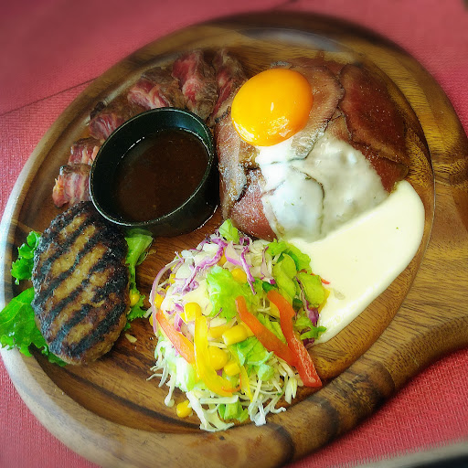 ランチで伺いました。 知人からの評判もよく楽しみにしていましたが、他の方が写真であげてるものより明らかに黒いハンバーグが提供され外側がバリバリに焦げていました(特に下の部分