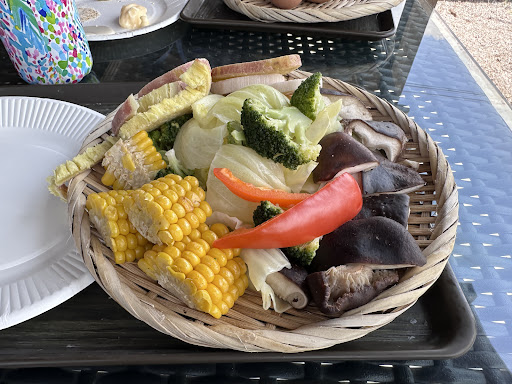 They offer a steamed vegetable plate for vegetarians/vegans, plus onsen eggs and steamed pudding that comes in a cute little egg cup for those who eat eggs and dairy.