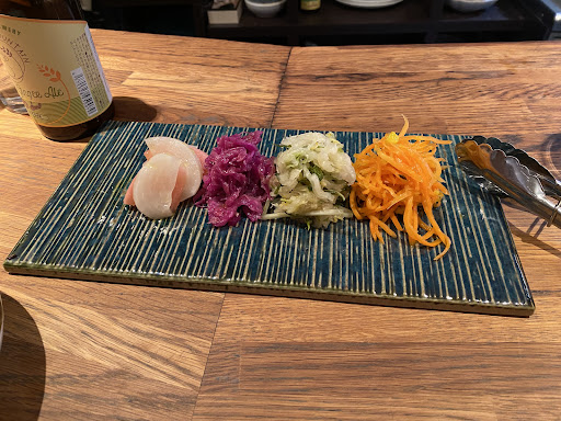 Read moreWent on a Friday evening in November after passing it during the day. There was a group of 5 already in and then just the two of us at an 8 seat counter. The chef managed to finish feeding them, take about 5 phone calls and prepare a superb 7 course tasting menu for the two of us. The food was fabulous and also some interesting and very impressive wine. After just over two weeks in Japan this was one of the very best eating experiences. And a lovely chef who explained everything to us. A great experience and...