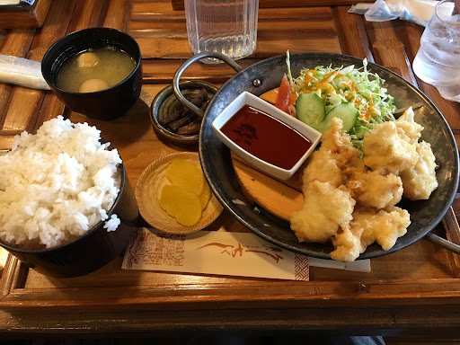 とり天を食べるために別府をふらふらしておりましたが、東洋軒とリボンは人の多さで行けず、とりあえずなんか食べようと立ち寄りました。 メニューを見ると大分料理以外にも魅力的なメニューばかりで相当悩みまして、、、 連れはとり天、私はだんご汁を注文しました。 とり天は今まで食べて来たものの中でダントツ一位のうまさでした。効果音が鳴っているのではと疑いたくなるほど、衣がサクサクで、アッサリとしながらも鶏の旨味を感じられる絶品でした。 だんご汁はもち巾着かと勘違いするほどデカイ麩が入ってます。見た目よりアッサリしているかと思いきや、食べてる途中から箸が止まらなくなる、ジワジワ来るタイプの美味しさでした。 お米も大分県産のもので、料理に良く合いました。
