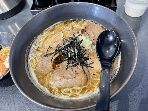 Read moreWhat a superb bowl of ramen, more art than food, the thin ramen noodles had a perfect weight to balance the soup. I tasted pork, chicken and dashi in the broth with a bit of yuzu. The pork was thinly sliced and smoked gently. The sashimi side dish with sesame was as delicate and fresh as any I’ve had. I especially loved the use of super fresh local aji (horse mackerel). This meal was as satisfying a lunch as one could only hope...