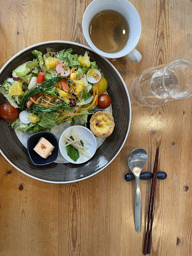Read moreナチュラルモダン?な店内で、私はグラタンランチを、同行者はフィットチーネのカルボナーラランチを注文。 まず本日のスープ。今日はとっても香りのいいゴボウのスープ!鶏ガラからスープを取ってるとのこと! 次にサラダ&プチ前菜3種。サラダは12種類(私調べw)のお野菜がたっぷり! 今日の前菜はドライトマトのキッシュ、とうもろこしのムース、むかごとさつまいものバルサミコソース。 そしてメインのグラタン&自家製パン! ちょこっと深めの小ぶりなスキレットに入ったグラタンはアツアツとろとろ♪ ひきのいい中はもっちり外はパリッとしたミニ角食がとろとろのホワイトソースによく合います!! 食後のスイーツにとっても心惹かれるのをぐぐっと我慢してコーヒーをいただきました。 同行者のフィットチーネのカルボナーラもだご汁?と見紛うほどの極太で、きっと手打ちパスタなのでは?(聞きそびれた…) こちらもスキレットでのサーブで卵がとろとろで美味しそうでした(^^) 表通りからの曲がる角が若干判りにくかったですが、落ち着いた店内で美味しいランチを堪能出来ました。別府に来たらまた行きたいです。 ...