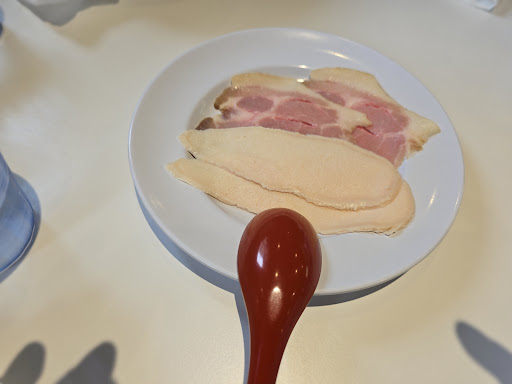 Read moreThis is a very unique spin on ramen. The bowl was served with a cappuccino like froth to it. The broth was light and thinner than traditional ramen. The thin sliced chicken and ham were delicious. They bowl came with the protein in it, and they also gave is each 2 extra slices of each meat l served on a plate to the side. I could taste the chicken in my broth. I rather enjoyed it. My son preferred a more traditional ramen so he only gave it an average review. To each his...