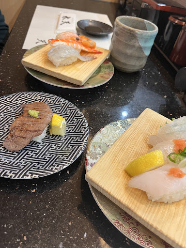 Amazing “conveyer belt” sushi place. However even though the conveyer was running nothing was on it. But really you should come here for the quality of the fish. Prices are very reasonable (at least from a Californian POV) and the fish is thickly cut. We ordered at least 4 cuts of premium toro but also enjoyed the white fish (especially horse mackerel) many little side dishes.