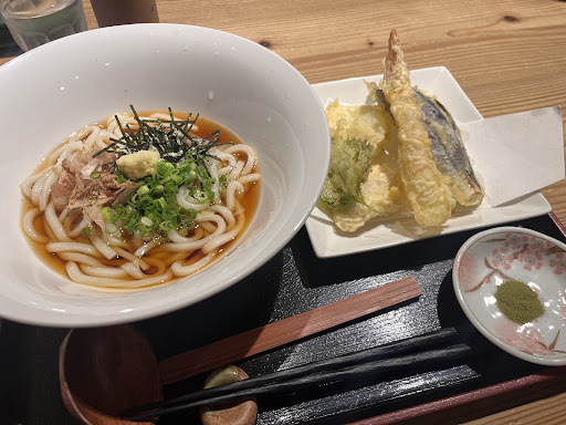 The udon here is just perfect—cooked al dente 🤤 and the cold soup gives it a great texture. The tempura is crispy outside but feels like the food is steamed inside, which is awesome.