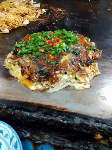 Read more焼き方については星1のレビューに準ずる所であります。 初めてのカキオコ体験だったため、入念な下見ののち、別のお店を候補として挙げてから到着。 しかしながら、当のお店は臨時休業。 牡蠣だけにリスクを感じており、レビューを良く見て選んだだけに頭の中がからっぽに。 お連れに『諦めたら試合終了だよ!』 との言葉で我に帰り、次の候補を選定。 市営に止めた後少し散策するといかにもなのれんを発見。 ここはいけるんじゃないか!? との期待値が高まりすっと扉をあけました。 そこには中央に6、7席ほどの椅子が置かれた鉄板がどーん。 周りをお待ち席が取り囲むスタイル。 プロレスリングと観客の関係性です。 まあ、歴史があるから。 との思いもあり、お連れが少し控えめに注文の声かけ。 しかしスルー。 距離的には1m以内のはずなのに。 なにか特別な符牒、暗号があるのかもしれないと再度店内をぐるりと。 耳が悪いので大声で注文しろ、との張り紙を発見。 あまり私語が許されない雰囲気なので手話で伝達。 そうこうしているうちに主より 普通に注文を聞かれる。 このやりとりはなんだったんだ。 量が多いことは隣を見て認識していたので、写真のカキオコと牡蠣焼きを注文。 シェアして食べようとの作戦。 牡蠣焼きは見事でした。 しかし、カキオコにヘラを入れた時点で溢れる小麦粉汁。 たしかに生っぽい。 主がゆるゆる食べて、と言ったのは、焼き直しながら食べろ、という事かもしれない。 しかし聞き返す雰囲気ではなく、後ろには続々と観客=待ち客が。 無言のプレッシャーがかかりはじめ、ゆっくり焼き直す心理的な余裕を持つことができません。 冷蔵庫に冷えた牛乳、コーヒー牛乳を発見するも、注文をする勇気はなく端から切り取りながら、ちょこちょこ焼き直す作業を繰り返します。 そこで主から観客に『次の人、何にする?!』 との声かけ。 当方まだ半分以上残ってて。 これはプレッシャー。 同じ注文だけに焼きあがる時間はなんとなく肌でわかる。 これ、間に合わんやつや。 そこから必死で食べる。 さっき五味の市で穴子丼なんて食べなきゃよかった。 そんな振り返りをするも手遅れです。 3分の一くらいでネクストお好み焼きがひっくり返される。 牡蠣焼きは裏面もしっかり焼かれる。 こちらの最期のお好みピースが取り皿に取った時点で主がへらを回収。 そして、ネクスト牡蠣焼きにネギ投入。 こうなると後2分位で出ないと、いけません。 次の待ち客も 『焦げるだろ』的な圧力を念じているはず。 背中にビンビン感じます。 いつもは少食なお連れがなぜか早く食べ終わる奇跡に箸を持たない手でお金を出しながら最後のお好み焼きを口に。 モグモグしながらお会計。 主様の 『気をつけて帰ってな』な優しい声かけに戦いの終わりを感じました。 お連れは牡蠣が生焼けだったため、夕方トイレから出てきませんでした。 当方、牡蠣のリスクは少し認識していたため、前日にR1ヨーグルトで予防活動をしていたため、若干のダメージで乗り切りました。 あ、味は良かったです。 焼き手が作るものを100%信用しないで、最期の調理を鉄板で共に完成する事が必要かと思います。 そんな昭和の大らかさを持ち、かつ観客の圧力にペースを狂わせられない方には胸を...