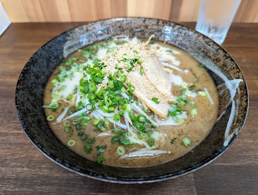 ゴールデンウィーク中に家族4人でお昼時に初訪問いたしました。 店内に入りテーブル席に着席すると、すぐさまに注文を取りに来て頂けます(早っ!) 初来店ですので味比べを兼ねて「とんこつ・醤油・みそ・塩」をオーダーしました。 暫し待つと着丼。 パッと見た目はどれがどれか分からないですが配膳いただいたお兄さんから説明がありますのでそれぞれ頂きました。 私はとんこつをオーダーしましたが表面にマー油のようなものが浮いており熊本系?の風情。 早速スープから頂くと香味油の香りと強めな塩気が流れ込んできます。 麺は好みですが私的にスープの塩気がかなり強く感じました。 ほかのスープも飲んでみて、とんこつベースながらしょうゆ・みそ・塩も存在感がありいずれも特徴が出ていますが全体的に塩気が強めとは思います。 味の基準は人それぞれですので好み次第ですが店員さんの対応は良く、お店の雰囲気も良いので常連さんが多くおられている人気店ではないかと...