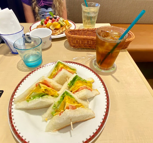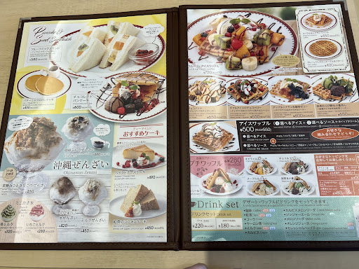 3 meals. 1 snack. 2 drinks. 3,250 YEN (about $25 depending on conversion rate). If you’re looking for a light lunch/brunch or a lighter than usual dinner, stop by here and have yourself a wonderful meal. Quiet ambience, with really nice and kind employees. Great customer service as well. The food was so fresh and appeared to be made to order made with the juiciest of ingredients. The snack set comes with three waffle fries, 3 onion rings, and a good sized portion of fries, comes with ketchup. This set is good for a toddler or small child, our 9-month old devoured the waffle fries and half the fries. The egg salad mix toasted sandwich is a very light and simple sandwich made with egg salad, lettuce, tomato, and toast. Comes with a side of fries and ketchup. The croquet monsieur was also a great option for us. It was very simply, but very good as well. Ham, mayo, melted cheese, bread. One of these is good for a meal or have both if you’re a little more hungry than usual. We also ordered of the the fried chicken dishes. The soy sauce one, and my wife loved it. All in all, we would recommend and go again (we will, soon). The servers potion of the menu is as big as the rest of the menu and they have some really good looking stuff we will be trying the next time...