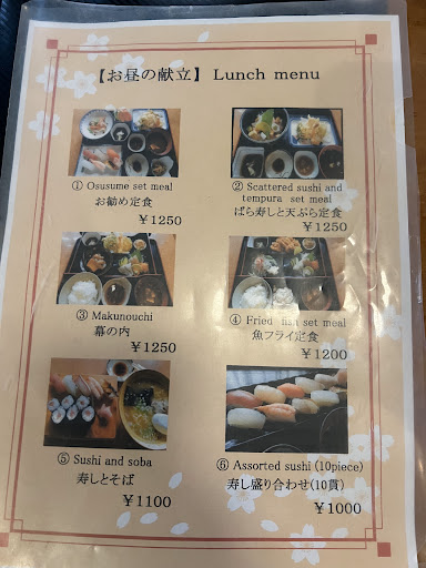6 pieces of sushi of my choice, tuna roll, and soba ran me 980 yen. I loved the sushi, the chef and his staff (one waitress) were very friendly and helpful. I'll be back next time I'm there.