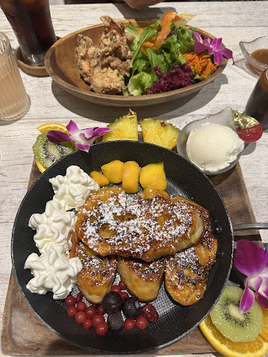 Read moreIf you're looking for some delicious pancakes and options these is the place to go. I had three (3) pancakes with bananas, carmel sauce and whipped creme on the side. Scrambled eggs with cheese which I didn't see on the menu (I'm glad I asked), mahi mahi fish sandwich topped with a fried egg. My choices were awesome, tasteful and presented well. The alcoholic beverages weren't that good. I had a beer instead. I highly recommend eating here while in Okinawa American...