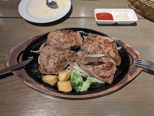 Read moreI visited specifically this branch of Jumbo Steak Han’s in America Village after a long day, opting for the Rib Eye Steak (240g) (¥3520) with an All-You-Can-Drink Beverage add-on (+¥440), which included ice cream. The steak was thick and juicy, but slightly uneven in some parts, making it more medium than the requested medium rare. The beefy flavour was strong but not fully satisfying, though the in-house sauces helped enhance the taste. It was still a good and filling meal tho.