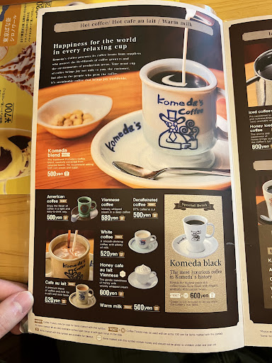 Read moreThis place is a good Cafe to visit and have a dessert and coffee. I got the hot cake with icecream on top(shiro-noir) with their (komeda) black coffee. The cake is highly recommended. That cake is a mix between a pancake and a croissant. The coffee really didn't do it for me. It tasted like a regular cup of coffee. It was good but not great. The menu made it sound like an exclusive kind of coffee bean. I also got their verity sandwichs and again good but not great. Overall, a good place to stop and have a coffee and a bite to eat. Just don't expect to...