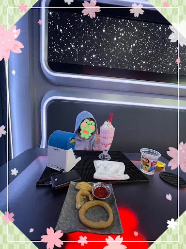 The interior is fun to take in. There is so much to see and it also holds that classic diner feel simultaneously. The single seats are cozy but are more lounge style, so I preferred sitting on the booth side. Maybe because of my hight lol. My daughter also enjoyed playing games on the little game machines.