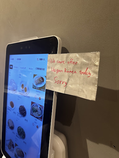 During that time, staff came outside twice to ask how many people were in line—but not once did they think to tell us there was no vegan ramen. You thought the level of importance was equal to that of a sticker inside when you only see it after you finish waiting in line?