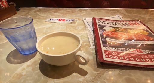 Once you place your order, you can visit the salad bar. The salad bar has soup, rice, and salad. This is included with your meal when you order steak. Also, they have a drink bar and ice cream bar that is separate and includes a small cost. I did not indulge in the drink and ice cream bar, but the Mushroom soup was delicious.