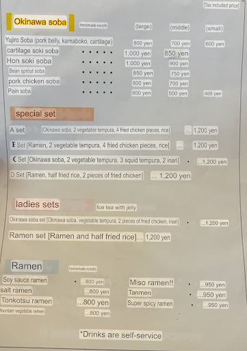 A local legendary hole-in-the-wall restaurant, this is a local community staple serving up Okinawa Soba and other noodle dishes. While they do serve ramen and yakisoba, their specialty is Okinawa Soba, which differs from other noodle dishes by having flat wheat-noodles in a clear salty pork shoulder broth. For anyone trying Okinawan Soba for the first time, I recommend getting Yujiro Soba, as you get all 3 different types of meat to try (Pork Belly, Cartilage, and Kamaboko (which is a fishcake)).