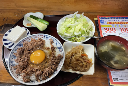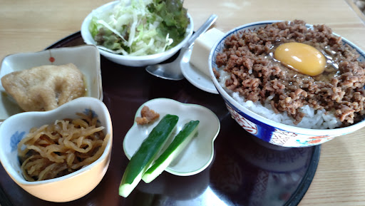 Read more店前にバイク停めて入ったら怖い人が来たと思われた(笑) それは兎も角。 味はとびっきり良いわけでは無いけどまぁ美味しい。学生向けな提供の仕方で小鉢の種類と量が凄い。 自分も若い頃は食べたけど今は無理です。ご飯少なめで頼んだけど盛ってきたのを見て「も少し減らして!」ってお願いした(^^;; 運動してる子やガテン系の人には良い店だと思います。 そうそう、生卵も付けてくれる様でしたが断りました。充分腹一杯になりますって。 あと、気のいいお婆ちゃんのワンオペなのでその辺は考慮...