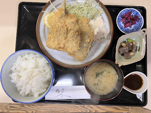 Read more平日限定のランチ目当てで金曜日の昼に初訪問。 駐車場は無いので近隣のコインパーキングに駐車。 12時少し前に到着したところまだお客はいなかった。 年配夫婦なのかな?大将が厨房で、配膳が奥さま?元気なあいさつで気持ちが良かった。 2人と伝えるとカウンターに通された。 その後6人組が奥に通され、その後2人組とお一人様が2人来て12時過ぎにはカウンター6席は満席に。 その後の来客はあったがすべて断わっていたので、奥は一組しか入れないのかな? 幕の内弁当1,500円をセレクト。 相方はアジフライ定食900円。 下調べのときと値段が違うので、値上げしたのかな? オーダーから15分程度で配膳された。 天ぷらは海老とキス、イカとししとう。 刺し身は茹でタコと甘エビとマグロ3切れ。 値段の割に少しさみしい感じ。。 でも煮物も味噌汁も美味しかった。 相方のアジフライは肉厚でホクホク。 ただ、小骨の処理、特に尻尾の辺りが少し気になったかな… 千葉のアジフライは美味しい店がたくさんあるからねー。 お見送りも気持ちの良いあいさつで、お二人の接客は良かった。末永く元気...