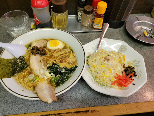 星は5段階評価で3ですが、2.6。 地域密着という感じの気を衒っていない中華屋さん。 ラーメンは豚骨系と鶏がらベースに背油の浮く濃厚系。大きなチャーシュー◎煮玉子は味玉でない普通のもの△その他メンマや海苔がトッピングされていました。麺は手もみ風ちぢれ麺で、茹で加減は堅目でオーダーするも柔らか目・・・。 炒飯はサラダ油が少し気に成ったけど、まぁまぁの香ばしさとトッピングされていた紅生姜と辛子高菜で、そこそこ美味しくいただけました。 餃子は不味からず美味からずといった感じ。あえて言うならバリ...