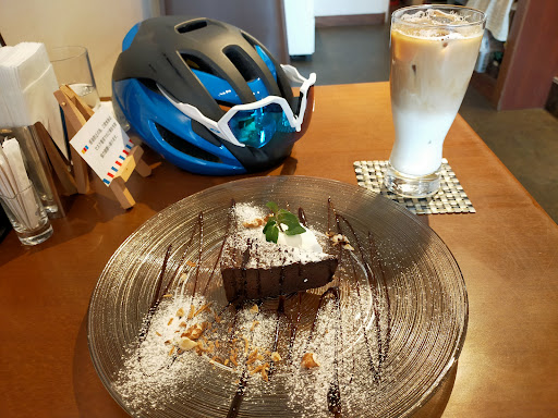 Read more平日のお昼時に伺いました。 駐輪場などはなく店の近くに停めるようでした。 席につき注文し帰りに会計になります、現金のみでした。 でかいテレビが上にありBGMがわりになってました。 席についたときにヘルメットを褒められすごいフレンドリーな接客でした。 ショコラケーキとアイスカフェラテを注文しました、キレイに飾り付けられ濃厚で美味しかったです。 帰り際に店長らしき女性の方にチョコ好きなのかときかれ1個180円でチョコクッキーをオススメされ2個ほど買ってみました、濃厚で美味しかったです。 接客が...