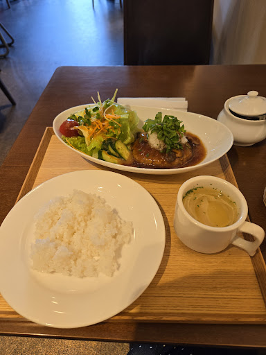 和風ハンバーグランチ、ご飯も、少食系の私にはちょうど良い量でした。サラダもドレッシングが程よくかけられていて、美味しかったです!ハンバーグはもちろん、バッチリです。 チーズケーキも絶品でした。運んで頂いてすぐ食べ始めてしまい、写真なくてすみません。でも、本当においしい!