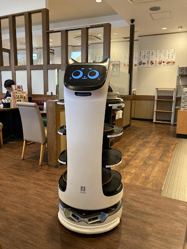 完成した料理は配膳ロボットが運んでくれます。配膳ロボット、以前より噂は聞いていたのですが、実際に配膳されると嬉しいものがありますね。
