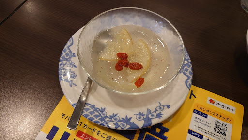 Read moreランチ時に行きましたが、13時過ぎだったのですぐに入店でき、スムーズに注文、食事をすることが出来ました。ランチメニューも日替わり、定食メニュー、麺類のセットメニューとありました。棒々鶏サラダは、ほぼ二人前の量で胡麻ドレが美味しかったです。単品で黒酢豚、五目焼きそばを二人でシェアして食べ、定食ランチは餃子、焼売定食。餃子の皮がモチモチしていて中の具もたっぷり入っていて美味しく、ライスは無料で大盛にでき、少なめにすると20円くらい値引きされます。ドリンクバーは特にホット烏龍茶の茶葉の種類が多く、凍頂烏龍茶が緑茶に近い色でさっぱりしていて良かったです。デザートのオーギョーチはレモン味で食後にぴったりでした。 GOtoの電子クーポンが支払いに使えました。すかいらーくグループのアプリクーポン便利です。タブレットでクーポン番号を入力すれば良い...