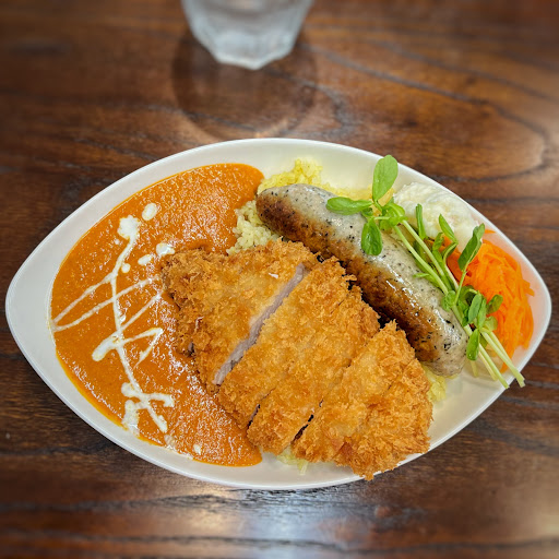 Read more前から気になっていたカレーの店です。昼に入りました。 水分は野菜の水分だけだそうで、岐阜に本店が有るそうな。とは言うものの、支店は岐阜と千葉の2店舗だけみたいで、チェーン展開はまだみたいですね。店内は白を基調とした壁紙で、シンプルな内装です。 席はカウンター無し。4人掛けテーブル3。2人掛けテーブル1でした。 頼んだのは《アメージング(とんかつ&ベジタブル)》1210円。《大盛り》165円。《カニクリームコロッケ》190円。《ホットコーヒー》150円。合計1715円です。クレカ使えました。 トッピングメニューがテレビの近くにしか設置していないのは改善した方が良いと思いますね。入口付近に座ると見えなくて、わざわざ見に行かないといけません。メニュー近くにお客さんが居ると気まずいです。トッピング用のメニューを各テーブルに置いてほしいです。 ルーの味は甘口でした。スパイスはじんわりと効いていますが、辛味は少ないです。円やかな味わいで、辛いのが苦手な方やお子様でも食べられそうな味でした。私は辛いのが好きなので、辛さが選べたら良かったのにと思います。 カツは値段の割りには肉厚で良いと思います。カニクリームコロッケは普通。少しカニの風味が弱いかなと思いました。ベジタブルはサツマイモ、レンコン、パプリカ、ズッキーニ、ヤングコーンでした。素揚げしたのかも。レンコンの食感が少し悪かったです。火の通し過ぎかも。量が少ないので、カツに比べたらコスパが悪いと思いました。私は野菜が好きなので、もっと野菜が多ければと思いました。サイドメニューにサラダが有ったら良かったですね...
