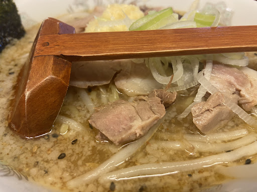 Read more味や盛りに関しては文句無し、ご飯がベチャッとしてたり席がベタベタしてるという事もなく満足 コッテリとした脂感を楽しみつつもスープはキレと透明感のあるバランスの良さで箸が進む 大盛が無料なのも嬉しい ただ店内はL字のカウンターと厨房、食券機にセルフの水というかなりシンプルな造りに比較的静かな店内 どことなく通常のラーメン屋のイメージと比べてしまうと活気が感じられず、味噌ラーメンは食券を渡す時に塩ラーメンに変更出来る事等の張り紙も座って落ち着いてからようやく目につく 食券機も正直一見ではちょっと見にくくて後ろに並ばれると焦る 厨房では一般的なラーメン屋のイメージにある火と油の感じは無く、客が自分1人だけだとホントにこれ熱々のラーメンが出てくるのか…?と不安になる程(熱々のラーメンはちゃんと出てくる) 全体的に常連には使いやすいが初来店の客にはちょっと緊張感 別に店員の態度が悪い訳でも大きく失敗する要素がある訳でも無いのだが、多分行ってみるとあぁこの店は苦手な人がいるだろうなぁ…となるのも分かる筈 オススメは味噌、味噌なのにあっさりしていてそこに丁度良い具合の脂で麺も美味しいがご飯にスープをかけて卓上の特性醤油を1滴垂らした海苔で巻いて食べるのも非常に美味い 次は塩...