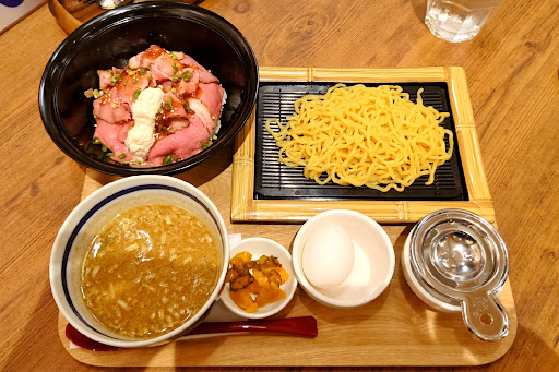 料理に言及すると。 頼んだのは『ローストビーフ丼&札幌つけめん(¥1,630-税込み)』だったのですが。 まず、提供された料理の見た目が良ろしくない。 盛り付けが貧相で、メニューと見比べてがっかり感がハンパないです。