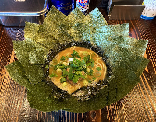 Read moreこの界隈に用事があり、腹も空いてるしラーメンだな、と。ラーメンデータベースとGoogleマップで検索。16時という微妙な時間に開いてる店は少なくて、口コミ見て良さげなので行ってみた。 店舗横に駐車場あり、何台停められるか不明。店に入ると先客1名のみ 厨房には大勝軒の故山岸さんみたいな店主さんのワンオペのよう 券売機を見ると何が家系なのかわからず。 たぶん 横浜らーめんだろうとポチッと。 私はライスとラーメン一緒に食べないので麺量を中にて選択、海苔があれば絶対追加でポチッとね。 山小屋風を撮りたくて、先客出て私が食べ終わって店主さんに写真撮っていいか聞いたら『ダメ』と。ありゃりゃ~ らーめんは5分くらいで着丼 海苔多すぎ(笑) デフォルト3枚なのかな?プラス10枚で13枚数だと思う。 このデカい海苔をこんなに出して採算合いますか?と心配になりますよ。 海苔好きとしてはたまらない。 こうやって出てくると丼の大きさわからず。 でもたぶん家系サイズだろうと。 麺の中を頼んだのですが意外と麺量は少ないね〜 おやつ代わりだからいいけどガッツリ昼食だと足らないかも。 スープは家系特有のドロドロ系じゃなくてサラッとした感じ 私はこの方が好みだね。キリッと醤油感ありー好きな味、つけ汁並にドロっとしてるより断然こっちがいいなぁ 酒井製麺の短めの麺はいつ食べても美味しいね。チャーシュー1枚、ほうれん草なしでしたね。 卓上にはおろしニンニクじゃなくて刻みニンニクのボトルがあり、これもまた珍しいね。 全般的に私の好みにピッタリでとても美味しくいただきました。横浜らーめん中950円+海苔100円でした。 ご馳走様です。再訪を誓います。 −−−−−2024/12/2再訪−−−−− この近くに用事があり〜時間が空いたので寄ってみた。14:30到着で先客5名 うち3人は着丼待ち 14:40着丼 今回はチャーシュー麺+海苔にて。海苔前回は100円でしたが、150円で10枚か。海苔好きは必須オーダー ここ、海苔で隠れてわからないけど家系アルアルで丼小さいんだよね。 大盛頼み忘れたよ。 酒井製麺の麺は安定の旨さ。 丼小さいからスープもちょいと少なめ 一回り丼大きいと嬉しいな。 大盛にすると丼サイズ変わるのか? チャーシューはバラ肉でホロホロ 箸で摘むと崩れちゃう 後半卓上の刻みニンニク投入でパワー...