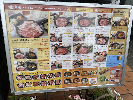 5000円ぐらいの食べ放題と500円ぐらいのソフトドリンク飲み放題プランでした。 肉の質は価格帯にあっていません。 同業態の焼き肉店に比べて価格が高いのにすこぶる質が落ちます。 食べ放題メニューと単品メニューの質が違うのかもしれませんが、それはそれで謳っていないと優良誤認となるでしょう。 肉の厚みは他店に比べやや薄く冷凍解凍肉のものもあり、脂が酸化しており、独特の乳臭さがでているものもありました。 また他店にくれべて非常にメニュー数が少なく、わくわく感もありませんでした。