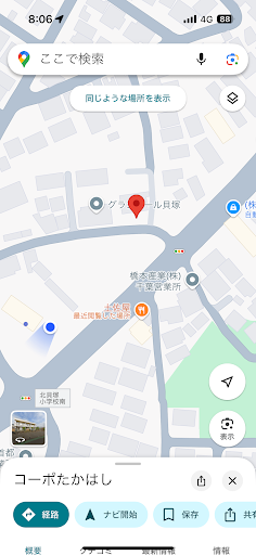 ピンの位置に駐車場あり