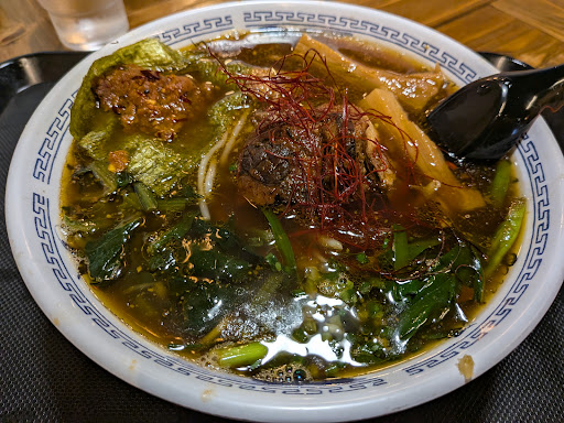 Read more新オープンと聞き来店。店内に入って座って思ったのがお箸がバラバラだったのが気になりますね。凄く細かいのですが待ってる間にペアのお箸はどれだろうと探しましたね。これだったらお箸を統一するか割り箸にした方がいいんじゃないかと勝手ながら思ってしまいました。ラーメンの印象は盛り付けやのってる具材が他では見ない感じで印象に残るラーメンですね。残念ながら自分の好みの味てはなくあんまり箸は進みませんでしたが店主の方が味の濃さや空調の事などを気にされてて1人1人に確認しながらやっていましたし店主さんも雰囲気のいい方でまだまだこれからいい意味で色々と変わるのかと思うのでしばらく間をあけてま...