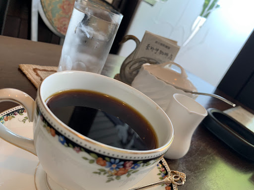 Read more非常にちゃんとした珈琲店で、雰囲気も物凄く楽しめるという意味でも大人向けの小さなスタバ。お値段も大体が550円~600円とそんなに高くなく、普段はセブンの100円コーヒーが一番旨いと感じている私でもここは行く価値があると思えた。ホットコーヒー系が8種、ホットカフェ系が3種、アイスコーヒー系が3種、紅茶が4種、ココアが1種、フルーツ系ジュースが3種。デザート系はコーヒーゼリーと、この時はチーズケーキと抹茶ケーキだった。アイスのウインナーコーヒーを初めて見たが美味しそう。コーヒーは普通に旨い。が、お店の雰囲気が凄く良くてさらに美味しく感じられた。土曜の夕方にたまたま見つけたが、一時間程の間に常連さんと思われる方々が個別に3名も来られてマスターと楽しそうに談笑されていた。そしてこのマスターが大変イケボで、枯れ専の婦女子ならば惚れてしまいそう。男の私でも聞いていて気持ちよかった。長年この近くの焼き肉屋に通っていたが全くここの存在を知らなかったほど、外観も落ち着いたお店。駐車場も2台分しかない。非喫煙者には申し訳ないが、コーヒー店でタバコが吸えるのは大変嬉しい。静かに、これからも利用したい。