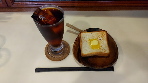 今回はモーニングのトーストを選択。 もう少しバターがほしいと思いましたが、提供される分量でちょうどよく、パンは外側サクッと中はモチモチで最高でした!(自家製ですかね?)