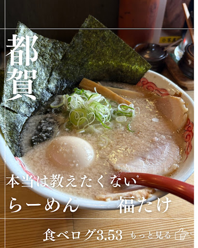 Read more僕はここのガメラが大好きで通ってます。 家からは車で約2時間掛けて食べに行くぐらい、大好きでたまらないです。 毎回頼むのは特製大ガメラでトッピングに岩のり ドロッドロのスープと麺が絡んで最高です! 最初はそのまま食べて、中盤からお酢を入れて食べるのが定番 メニューも豊富で他の品も食べてみたいのですが、僕は福たけ桜木本店に行ったからにはガメラ1択になってしまうぐらい愛してやまない一品です。